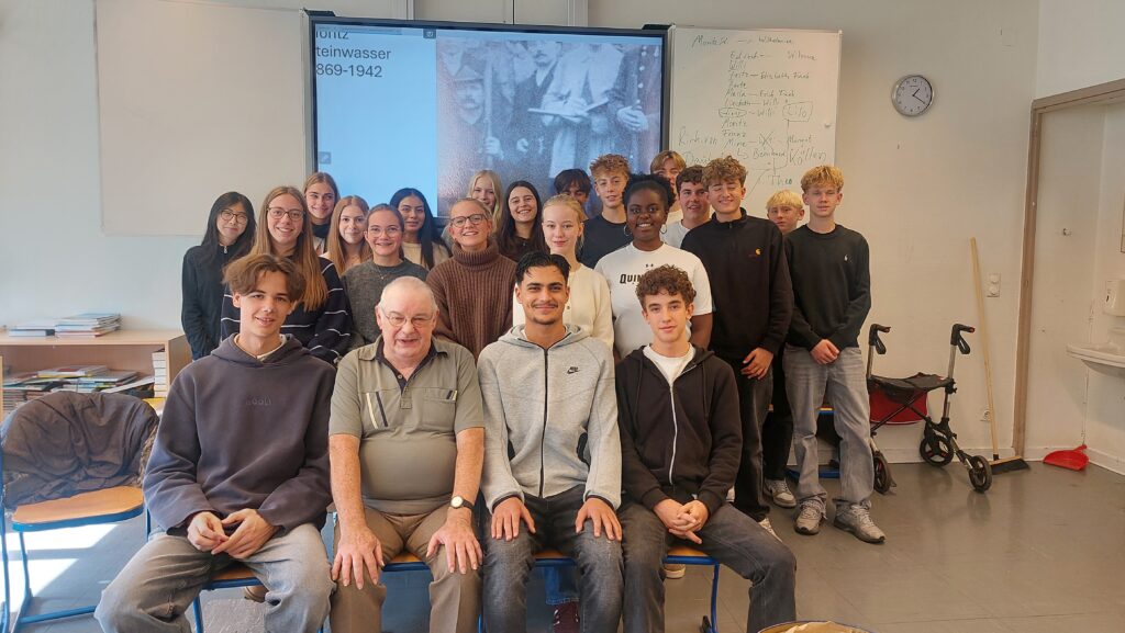 Wir, die Klasse 10D des Annette-Gymnasiums, haben am 26.09.2025 Herrn Rudolf Daubach zu uns eingeladen. Er ist ein direkter Nachfahre von Moritz Steinwasser, für den wir im Rahmen des Projekts „80 Jahre Kriegsende“ am 8. Mai 2025 in Benrath Spenden gesammelt haben, um die Patenschaft für einen Stolperstein zur Erinnerung an ein NS-Opfer zu übernehmen.