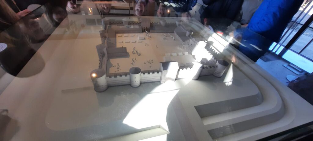 Eine Gruppe begann mit der Gestaltung einer sogenannten Caesar-Scheibe, einer antiken Methode zur Ver- und Entschlüsselung von Nachrichten, die bereits von Caesar genutzt wurde. Die andere Gruppe erhielt eine Führung durch das neu gestaltete römische Museum. Dabei wurden unter anderem das Aussehen des Kastells, das Leben und die Kleidung der Römer sowie bedeutende Fundstücke vom Standort erläutert. Zudem erfuhren wir, dass sich der Verlauf des Rheins im Laufe der Zeit durch ein Hochwasser stark verändert hat.