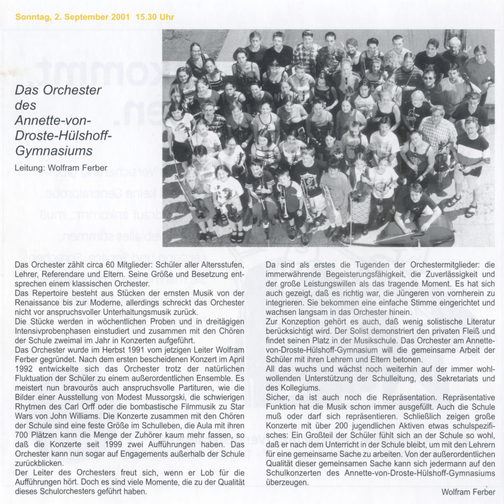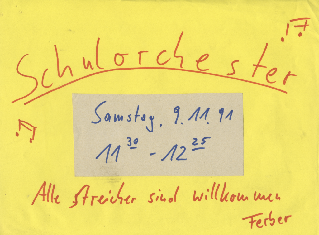 Dies milderte den Ehrgeiz der Schülerinnen und Schüler aber keinesfalls. Herrn Ferber gelang es, zahlreiche Personen für das Orchester zu begeistern, darunter auch Lehrkräfte, sodass das erste Konzert am 2. März 1992 stattfinden konnte.