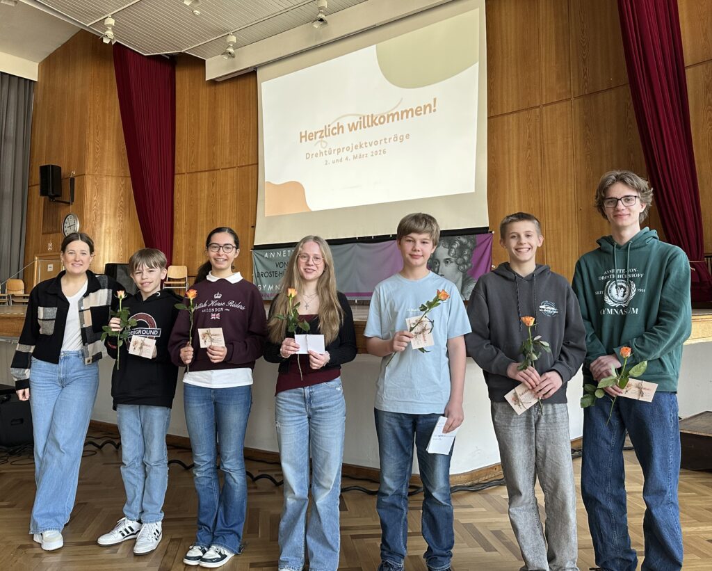 Das Drehtür-Projekt wird von Frau zum Stickling betreut und richtet sich an Schülerinnen und Schüler, die sich intensiver mit eigenen Interessen oder besonderen Talenten beschäftigen möchten. Während einiger ausgewählter Unterrichtsstunden arbeiten sie nicht im regulären Unterricht, sondern an einem selbst gewählten Projekt. Diese Zeit nutzen sie, um ein Thema zu erforschen, neue Fähigkeiten zu entwickeln oder eigene Ideen umzusetzen.